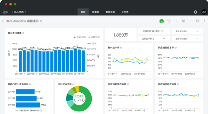 這是一款用于企業(yè)數(shù)據(jù)可視化分析的自助式敏捷BI產(chǎn)品,可以針對企業(yè)業(yè)務數(shù)據(jù)進行自由維度的探索式分析,釋放IT壓力,真正將數(shù)據(jù)分析工作交還給最懂業(yè)務的人,提高企業(yè)決策效率。